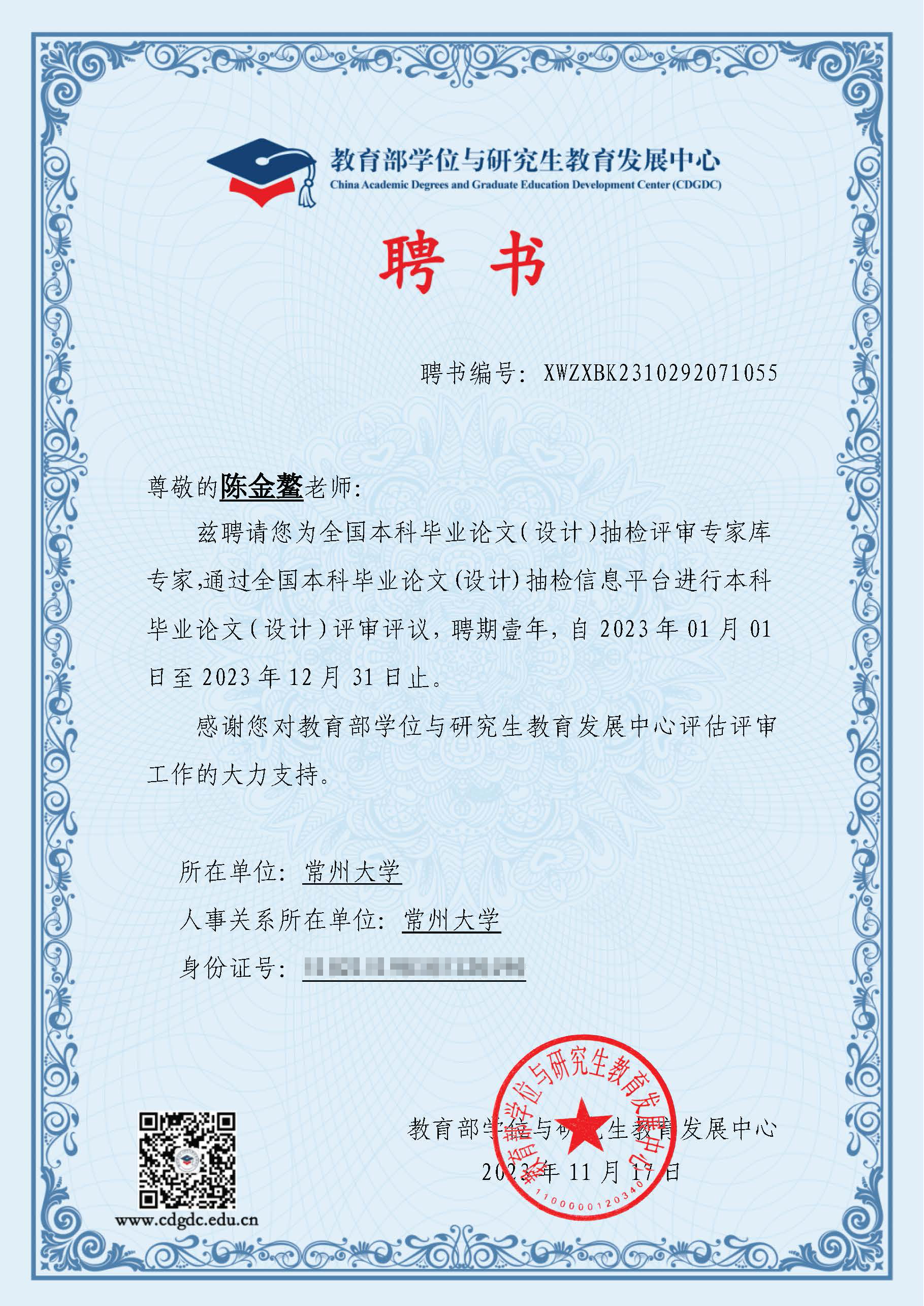 | 我院陳金鰲老師被聘為全國本科畢業(yè)論文(設(shè)計)抽檢評審專家?guī)鞂<?/span> |