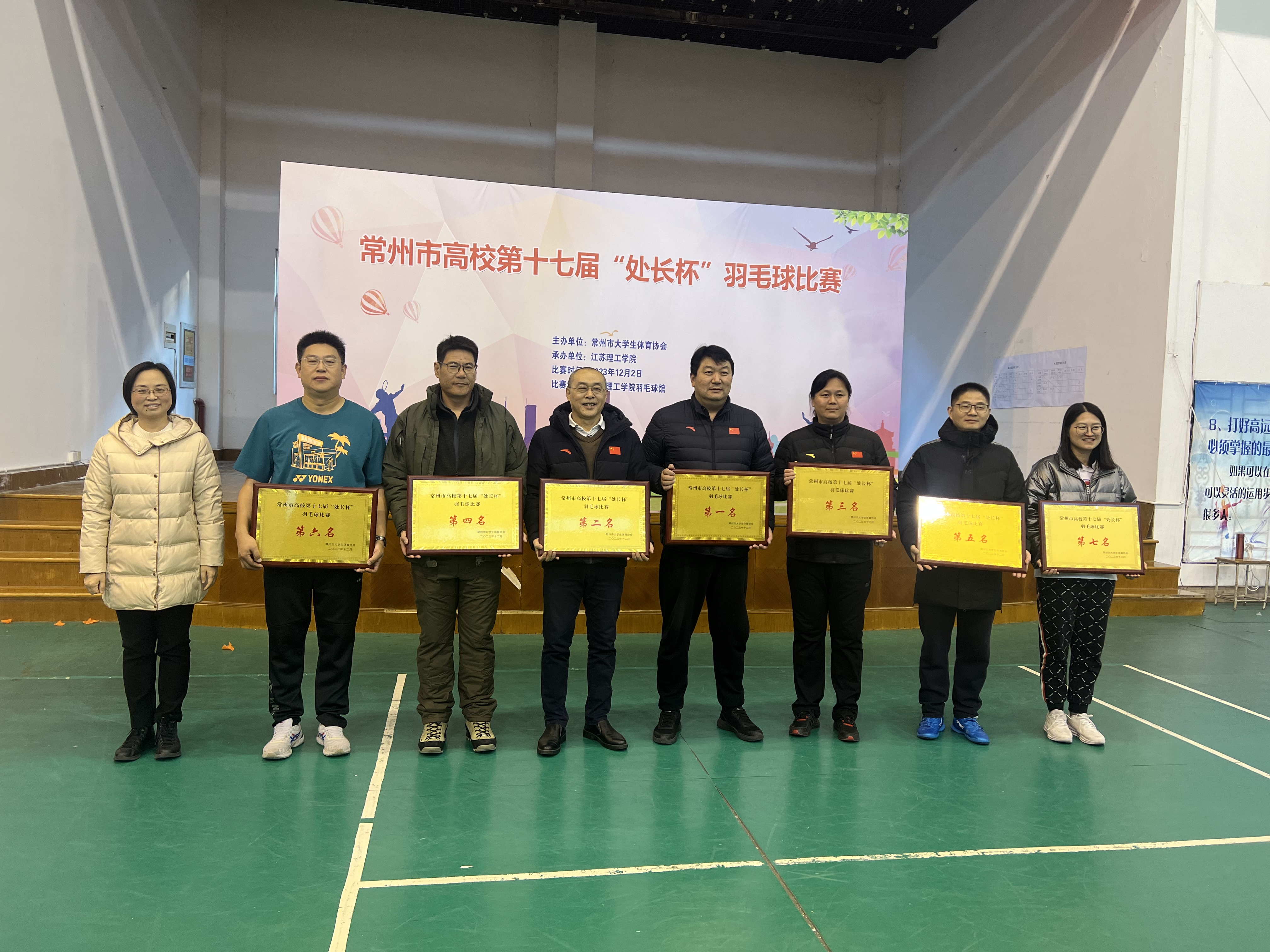 12月2日,由常州市大學(xué)生體育協(xié)會舉辦的第十七屆在常高校“處長杯”羽毛球比賽在江蘇理工學(xué)院舉行,我校榮獲冠軍。本次比賽由江蘇理工學(xué)院承辦,共有常州大學(xué)、江蘇理工學(xué)院、常州工學(xué)院、常州開放大學(xué)、常州工業(yè)職業(yè)技術(shù)學(xué)院、常州紡織服裝職業(yè)技術(shù)學(xué)院、江蘇城鄉(xiāng)建設(shè)職業(yè)學(xué)院等7所院校參賽。比賽分為男雙(2場)、混雙(2場)和女雙(1場)三個類別,常州大學(xué)隊員發(fā)揚(yáng)勇?lián)?zé)任、追求卓越的常大精神,團(tuán)結(jié)一致、協(xié)同作戰(zhàn)、不畏強(qiáng)手,在隊員的奮力拼搏和隊友富有激情的加油助威聲中,以小組賽第一出線。決賽中,戰(zhàn)勝常州工業(yè)職業(yè)技術(shù)學(xué)院,獲得了第一名的好成績。 通過本次比賽,不僅增進(jìn)了本校教師之間的友誼,也加深了在常高校之間的交流融合,增強(qiáng)了大家體育鍛煉意識,推進(jìn)了健康生活理念。