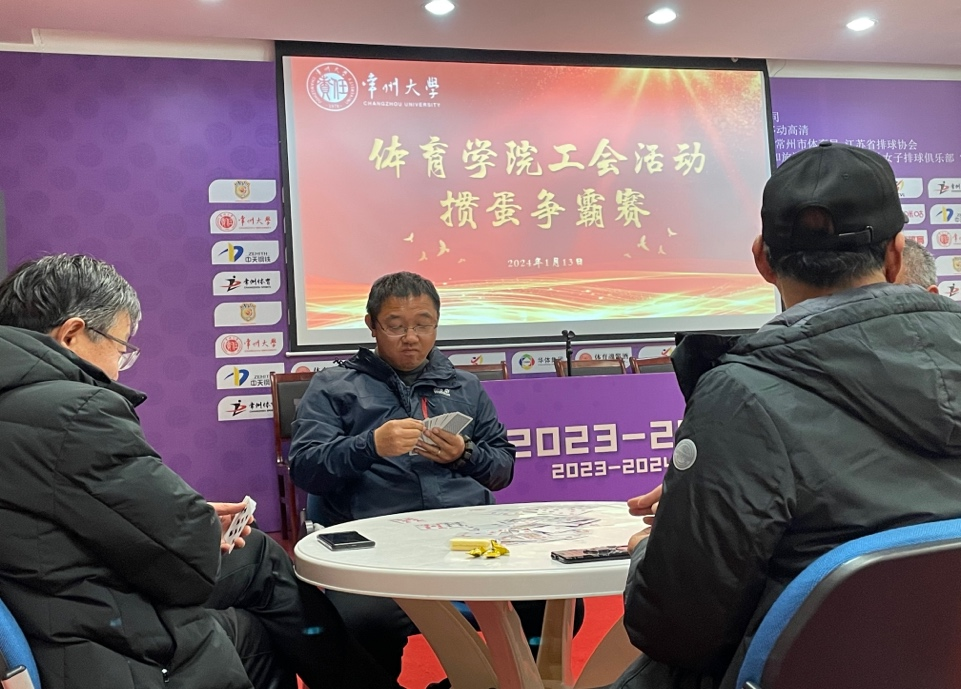 2023年1月13日下午,體育學院分工會在常州大學體育館新聞中心舉辦教職工摜蛋智力交流競賽。競賽旨在迎接新春佳節(jié),豐富體育學院教職工的文化生活,促進教職工間的交流溝通,增強團隊凝聚力與團隊合作精神。 競賽初期以教研室和個人自由組隊的方式進行報名,名單確認后不得再更換人員。競賽共分為3輪,第一輪為抽簽入座,第二輪為淘汰賽,依據(jù)比賽結果進行座位的調整與安排。