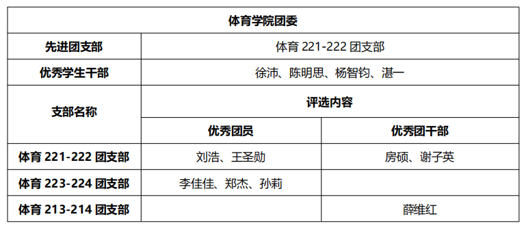 公示期2024年4月1日-4月3日,如有異議,請在公示期向學院團委反映,電話0519-86330207。 體育學院團委 2024年4月1日 |