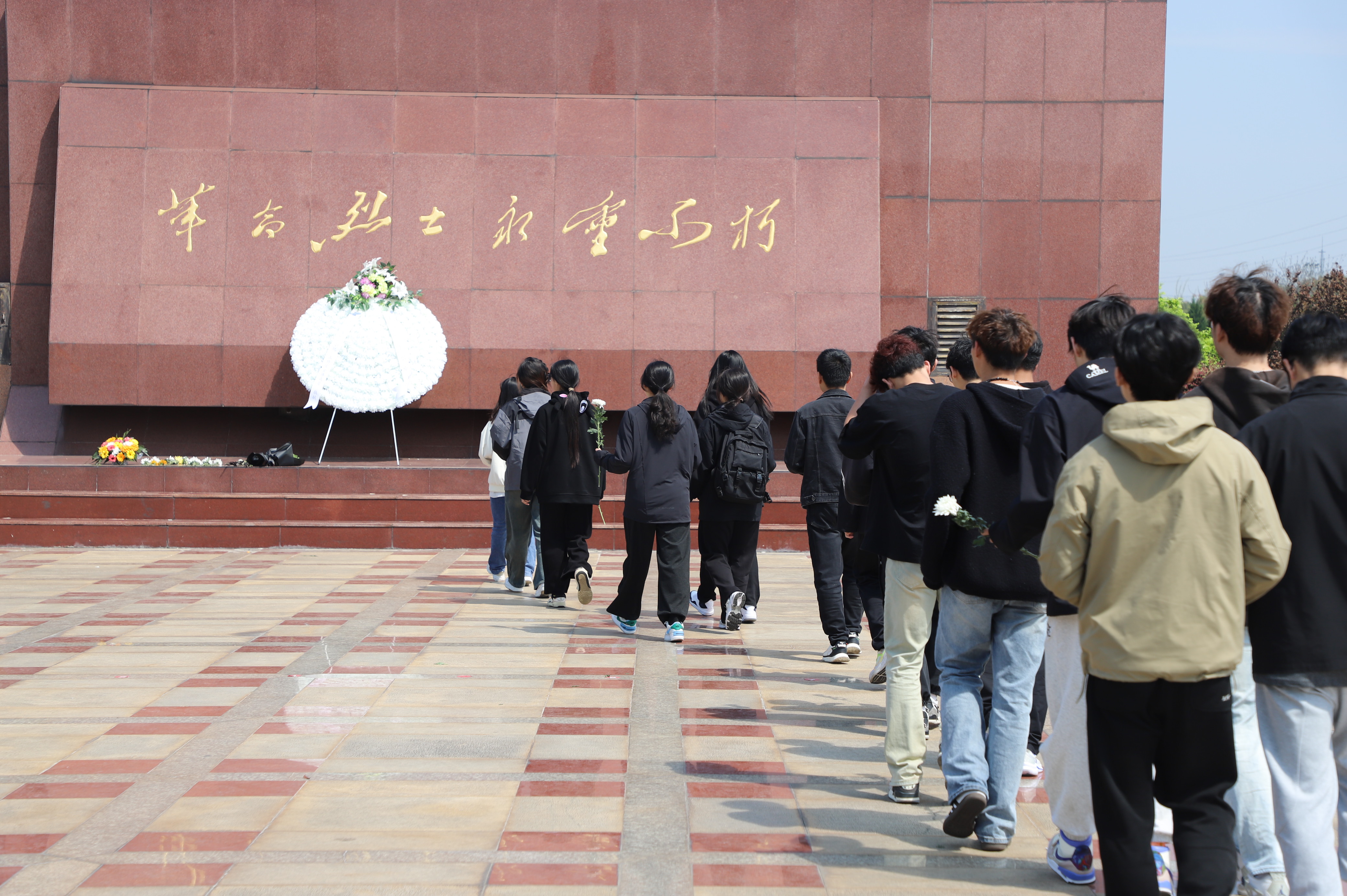 碑前,同學(xué)們依次為烈士們獻(xiàn)上鮮花,緬懷為民族解放事業(yè)英勇獻(xiàn)身的英雄。