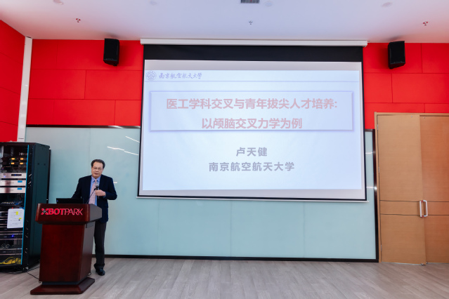 國家特聘專、國家杰青、美國醫(yī)學(xué)與生物工程院會士、國家重大人才工程A類入選者、南京航空航天大學(xué)多功能輕量化材料與結(jié)構(gòu)工信部重點實驗室創(chuàng)始主任、原西安交通大學(xué)副校長盧天健教授,教育部重大人才計劃入選者、南京體育學(xué)院黨委常委、副校長陳愛國教授出席論壇并作主旨報告。黨委常委、副校長李忠玉,學(xué)科辦、醫(yī)工學(xué)院、體育學(xué)院、機(jī)器人學(xué)院相關(guān)負(fù)責(zé)人、教師和學(xué)生等近200人參加活動,機(jī)器人學(xué)院院長徐淑玲教授主持論壇。 在主論壇中,盧天健教授作了題為《醫(yī)工學(xué)科交叉與青年拔尖人才培養(yǎng)—以顱腦交叉力學(xué)為例》的學(xué)術(shù)報告,報告從力學(xué)之機(jī)會、人機(jī)接口技術(shù)、理-工-生-醫(yī)交叉融合等方面介紹了交叉學(xué)科發(fā)展的機(jī)遇與挑戰(zhàn)。