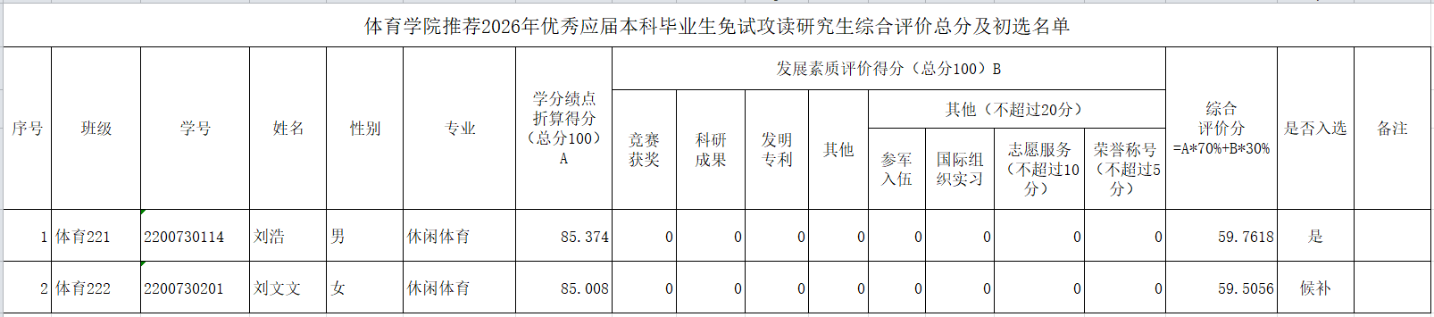 | 體育學(xué)院2026屆擬推免研究生名單公示 |