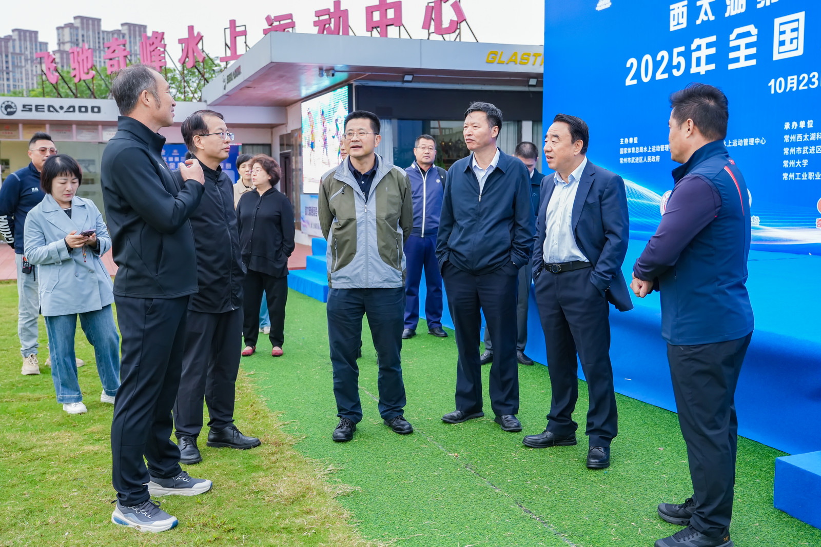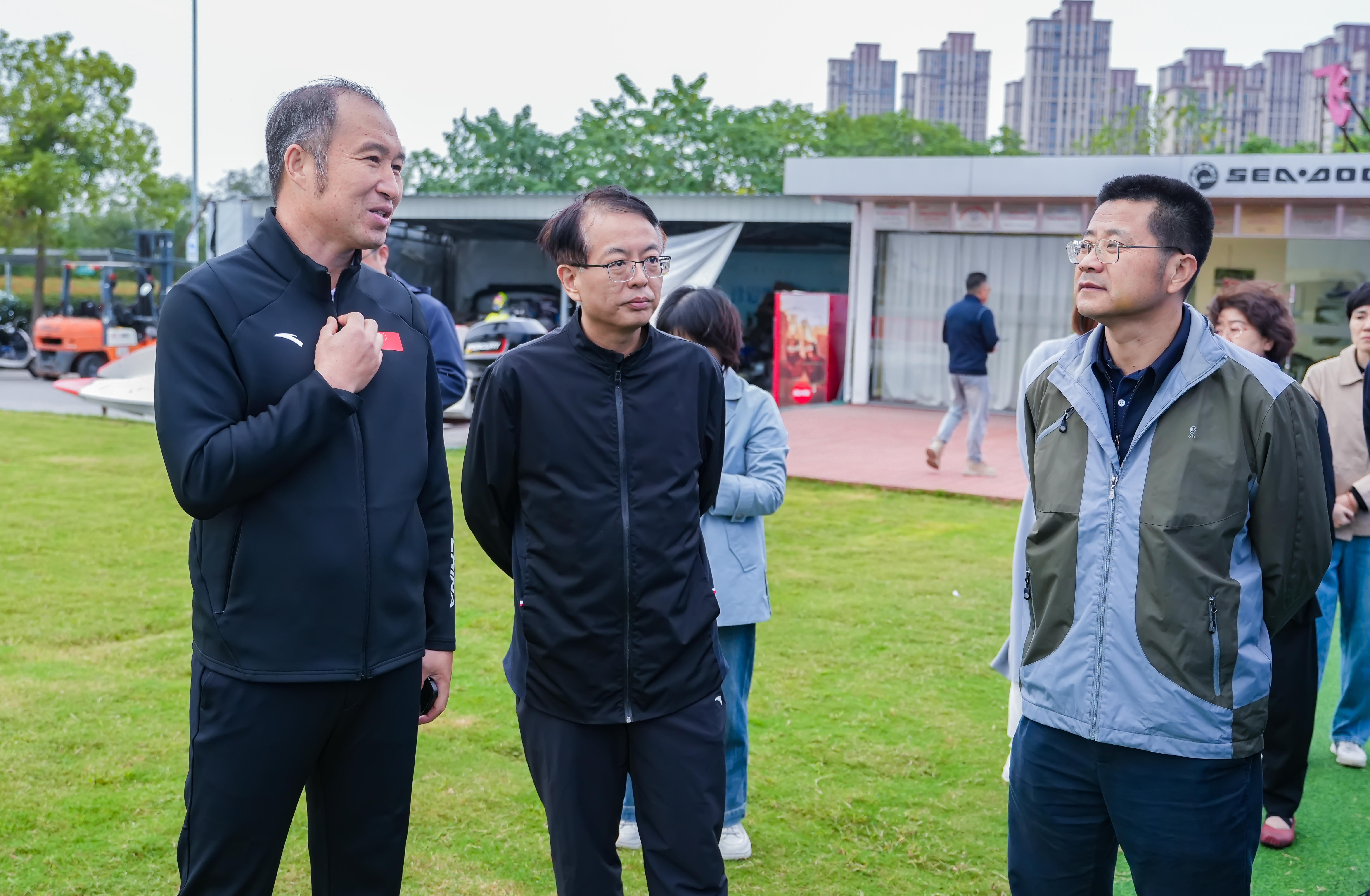 近日,原江蘇省人大常委會(huì)副主任、原江蘇省政府副省長(zhǎng)陳震寧一行赴常州,就水上運(yùn)動(dòng)項(xiàng)目發(fā)展情況進(jìn)行實(shí)地考察調(diào)研。省體育局副局長(zhǎng)張海濤,省發(fā)展體育基金會(huì)特邀副理事長(zhǎng)彭忠、秘書長(zhǎng)李薇,省發(fā)展體育基金會(huì)副秘書長(zhǎng)張愛英等參加調(diào)研。江蘇省常州市人大常委會(huì)主任、黨組書記白云萍,常州市人民政府副市長(zhǎng)蔣鵬舉,武進(jìn)區(qū)人民政府代區(qū)長(zhǎng)薛曄,以及常州市體育局、常州大學(xué)、西太湖管委會(huì)、武進(jìn)區(qū)文體廣電和旅游局等相關(guān)單位負(fù)責(zé)人陪同。