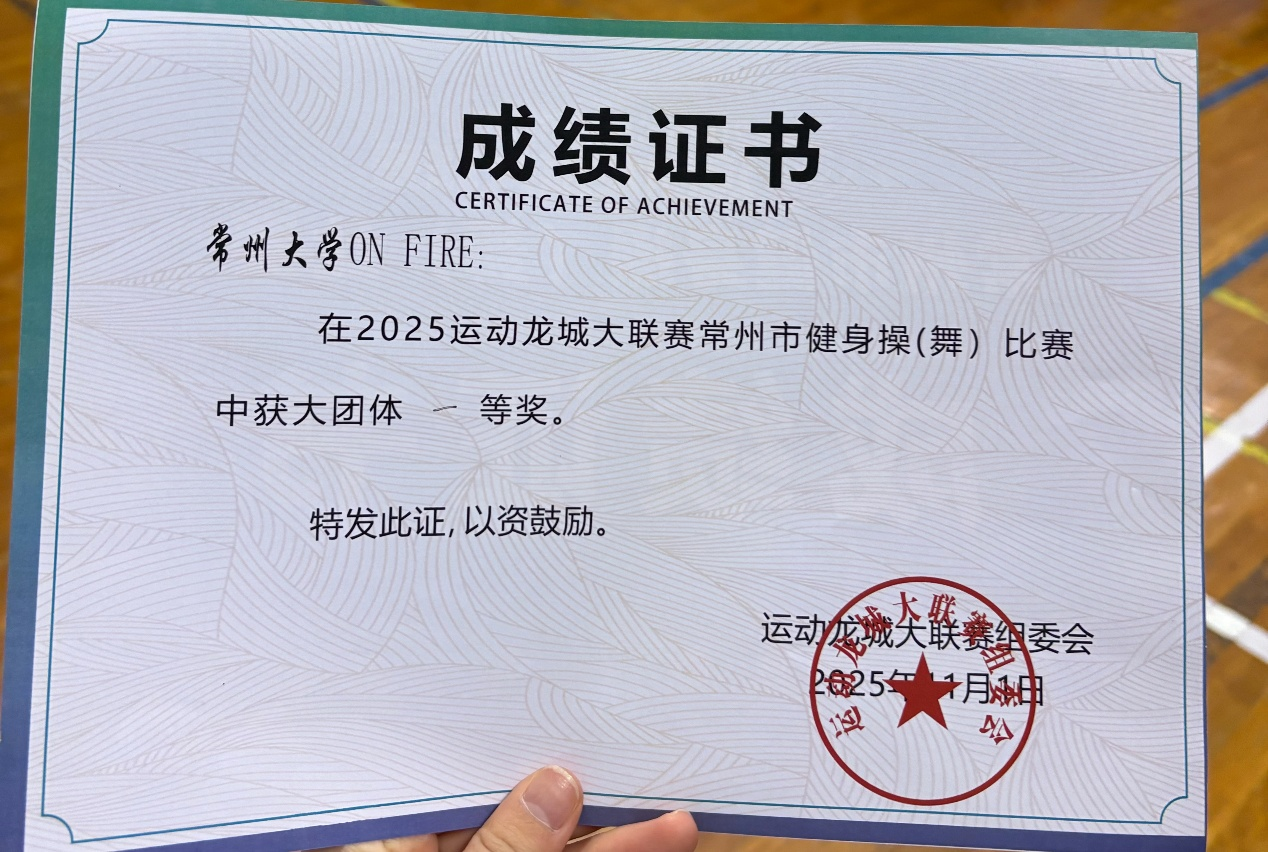 | 常州大學(xué)街舞聯(lián)盟榮獲2025運動龍城大聯(lián)賽常州市健身操(舞)比賽大團體組一等獎 |