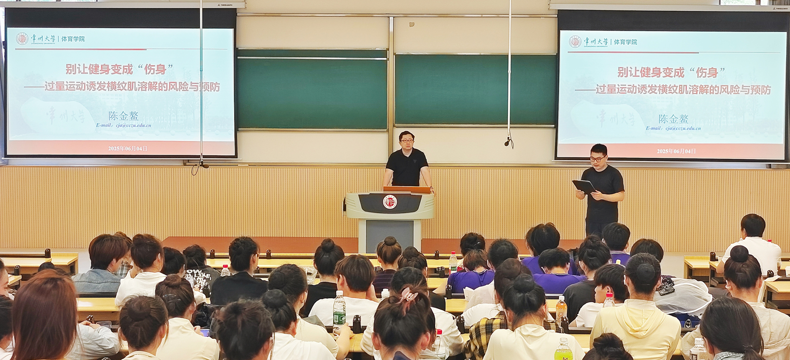近期,我院運(yùn)動(dòng)健康科學(xué)實(shí)驗(yàn)中心主任、江蘇高校“青藍(lán)工程”優(yōu)秀青年骨干教師陳金鰲應(yīng)邀在常州大學(xué)西太湖校區(qū)立功樓三階,為音樂(lè)與影視學(xué)院的表演和舞蹈專(zhuān)業(yè)學(xué)生開(kāi)展題為《過(guò)量運(yùn)動(dòng)誘發(fā)橫紋肌溶解的風(fēng)險(xiǎn)與預(yù)防》的專(zhuān)題講座,旨在普及科學(xué)運(yùn)動(dòng)與自我防護(hù)知識(shí),提升同學(xué)們?cè)趯?zhuān)業(yè)訓(xùn)練與日常鍛煉中的健康防護(hù)意識(shí)。本次講座由學(xué)院副院長(zhǎng)趙一兆主持。 陳金鰲老師從運(yùn)動(dòng)人體科學(xué)角度出發(fā),深入淺出地講解了橫紋肌溶解癥的生理機(jī)制與誘發(fā)因素。針對(duì)當(dāng)前社會(huì)健身熱潮中普遍存在的運(yùn)動(dòng)誤區(qū),陳老師指出:過(guò)度運(yùn)動(dòng)會(huì)導(dǎo)致肌細(xì)胞膜完整性受損,肌紅蛋白等物質(zhì)進(jìn)入血液循環(huán),可能引發(fā)腎功能損傷等嚴(yán)重后果。他特別強(qiáng)調(diào),科學(xué)評(píng)估運(yùn)動(dòng)強(qiáng)度與運(yùn)動(dòng)負(fù)荷是預(yù)防運(yùn)動(dòng)損傷的關(guān)鍵環(huán)節(jié),并詳細(xì)介紹了心率監(jiān)測(cè)、運(yùn)動(dòng)時(shí)長(zhǎng)與頻率控制等實(shí)用方法。在預(yù)防措施方面,陳教授系統(tǒng)闡述了運(yùn)動(dòng)前科學(xué)熱身、運(yùn)動(dòng)中漸進(jìn)負(fù)荷、運(yùn)動(dòng)后積極恢復(fù)的專(zhuān)業(yè)原則,并結(jié)合表演和舞蹈專(zhuān)業(yè)學(xué)生的訓(xùn)練特點(diǎn),提出了具有針對(duì)性的防護(hù)建議,同學(xué)們表示受益匪淺。 近年來(lái),體育學(xué)院積極推動(dòng)“體教融合”“體醫(yī)融合”“體藝融合”發(fā)展,鼓勵(lì)教師跨學(xué)科開(kāi)展科普服務(wù)與專(zhuān)業(yè)指導(dǎo)。本次講座不僅為相關(guān)專(zhuān)業(yè)學(xué)生提供了急需的運(yùn)動(dòng)防護(hù)知識(shí),也是我院教師發(fā)揮專(zhuān)業(yè)優(yōu)勢(shì),服務(wù)學(xué)校人才培養(yǎng)、傳播科學(xué)運(yùn)動(dòng)理念、促進(jìn)學(xué)科交叉融合的具體實(shí)踐,充分體現(xiàn)了我院在運(yùn)動(dòng)訓(xùn)練、運(yùn)動(dòng)康復(fù)等領(lǐng)域的教學(xué)科研成果轉(zhuǎn)化為實(shí)踐指導(dǎo)的能力。未來(lái),學(xué)院將繼續(xù)發(fā)揮專(zhuān)業(yè)優(yōu)勢(shì),為提升全校師生運(yùn)動(dòng)健康素養(yǎng)、營(yíng)造科學(xué)鍛煉的校園文化貢獻(xiàn)力量。