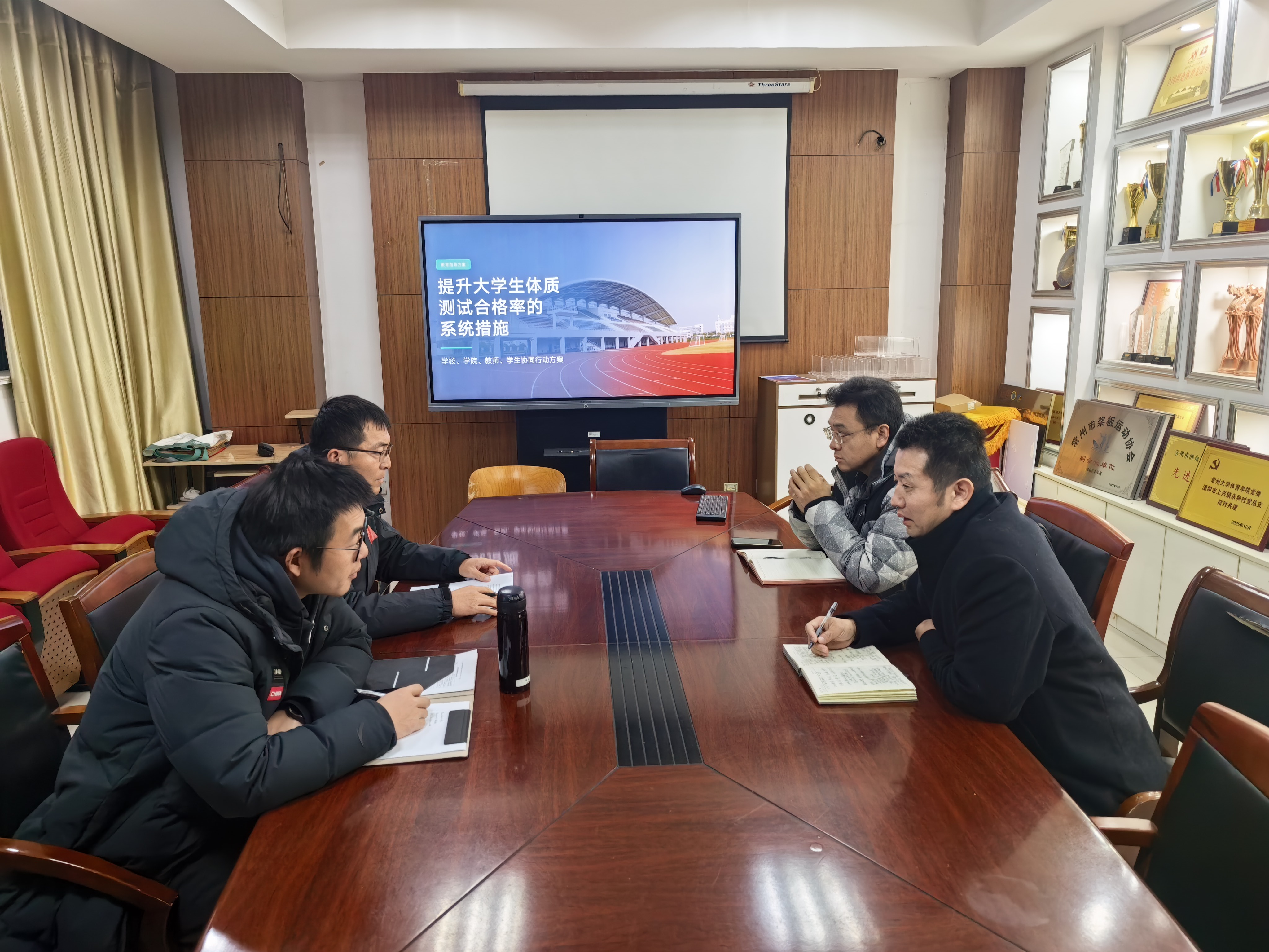 1月19日上午10:00,體育學院在體育館152會議室召開學生體質(zhì)健康水平提升專項研討會。院長沈綱、黨委副書記桑月標、副院長咸東進、以及相關(guān)負責人參與會議。 會上,體測中心陳海東匯報了提升大學生體質(zhì)測試合格率的提升方案。咸東進就體質(zhì)測試提升方案提出了具體改進措施,明確了課堂教學優(yōu)化、考核要求改革、課后精準訓練、資源條件保障四個方面來進行改進提升。相關(guān)負責人也提出了意見和改進的措施和建議。沈綱提出構(gòu)建“學校統(tǒng)管、職能部門主抓、二級學院推動、體育學院落實”的主旨思路,強調(diào)協(xié)同推進,確保各項措施落地執(zhí)行。 此次會議為體質(zhì)測試工作錨定方向,助力學生體質(zhì)健康水平提升。后續(xù)學院將細化落地提升措施,推動校園體育與人才培養(yǎng)雙提質(zhì)。