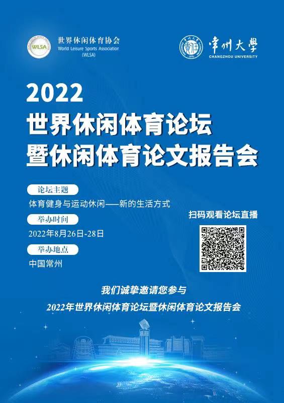 為深入貫徹落實(shí)《關(guān)于構(gòu)建更高水平的全民健身公共服務(wù)體系的意見》持續(xù)做實(shí)做好“體育健身與運(yùn)動(dòng)休閑—新的生活方式”工作,由世界休閑體育協(xié)會(huì)、常州大學(xué)主辦,常州大學(xué)體育學(xué)院承辦的“2022年世界休閑體育論壇暨休閑體育論文報(bào)告會(huì)”將于2022年8月26日至8月28日在江蘇省常州市舉行。本次會(huì)議采取線下會(huì)議+線上直播形式開展,參與方式:屆時(shí)可識(shí)別下圖中二維碼,即可進(jìn)入直播間觀看。