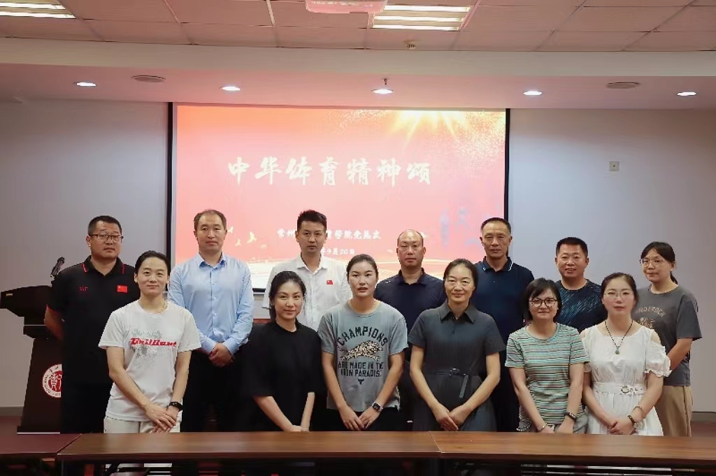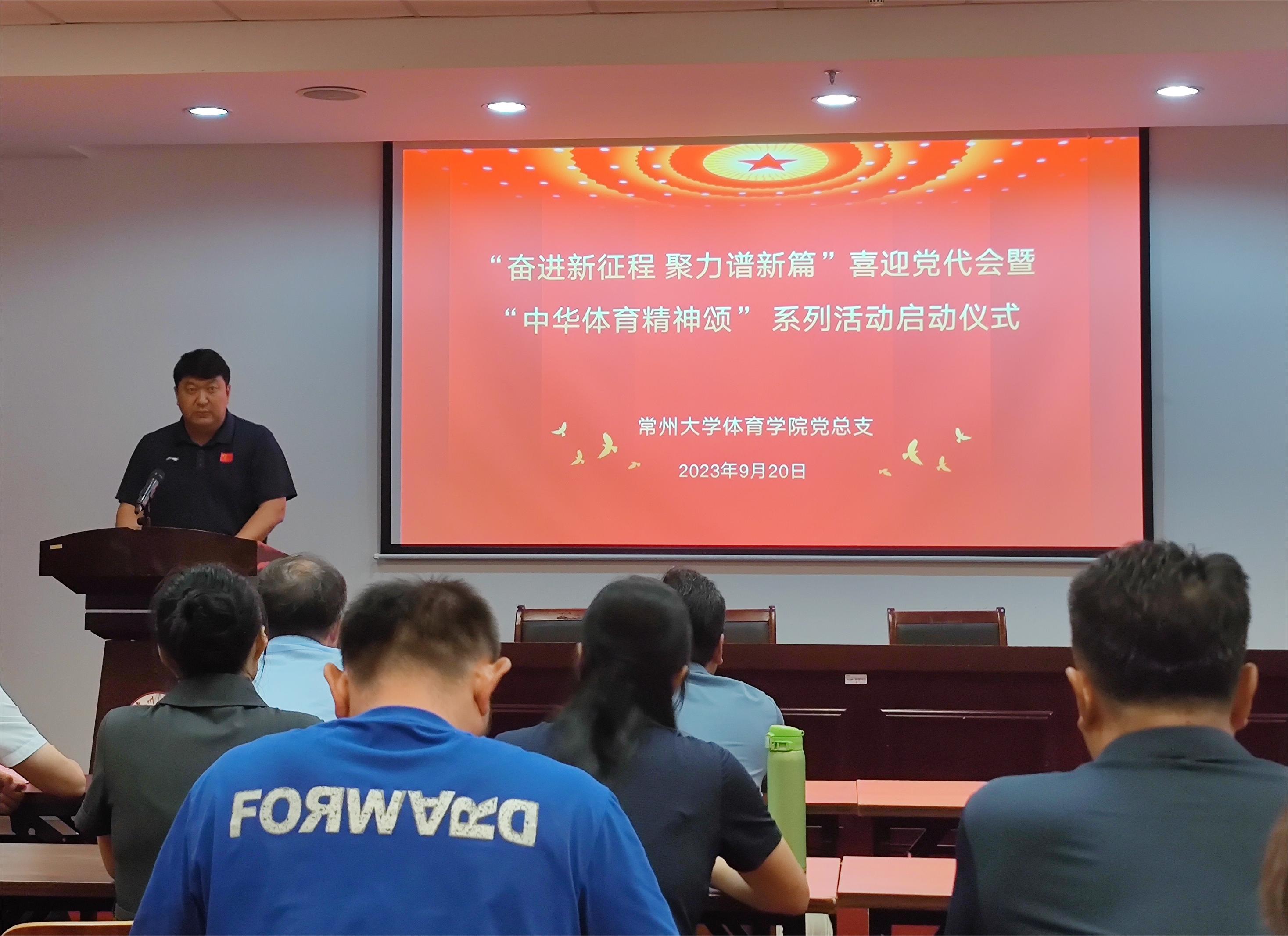 在深入開展學(xué)習(xí)貫徹習(xí)近平新時(shí)代中國特色社會(huì)主義思想主題教育之際,9月20日上午,常州大學(xué)體育學(xué)院黨總支在體育館新聞中心啟動(dòng)“中華體育精神頌”項(xiàng)目系列活動(dòng),為加快推進(jìn)體育強(qiáng)國建設(shè)、實(shí)現(xiàn)中華民族偉大復(fù)興的中國夢(mèng)凝聚力量,以優(yōu)異成績迎接中國共產(chǎn)黨常州大學(xué)第三次黨員代表大會(huì)開幕。全體師生黨員和教職員工參加了此次會(huì)議,會(huì)議由休閑體育黨支部和學(xué)院工會(huì)承辦。