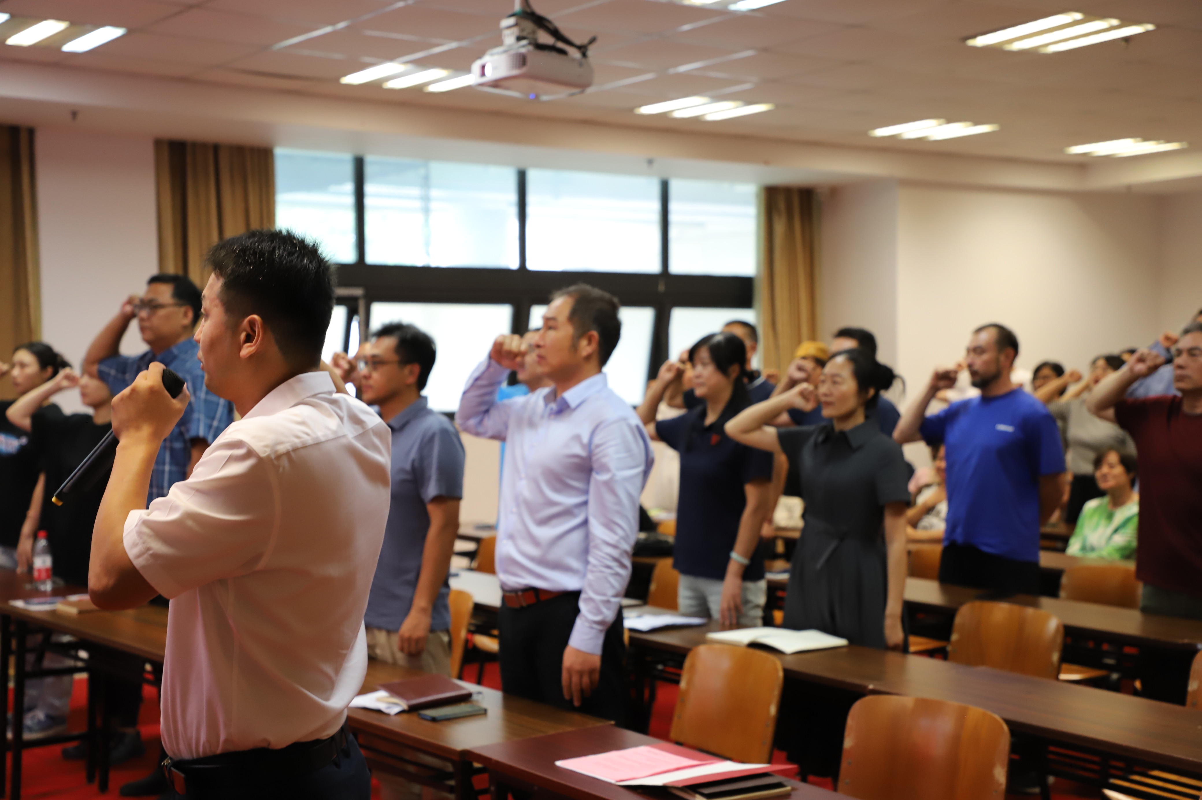 面對(duì)黨旗,沈綱帶領(lǐng)全體師生黨員同志一起重溫入黨誓詞。他強(qiáng)調(diào),入黨誓詞字?jǐn)?shù)不多,記住并不難,難的是終身堅(jiān)守。每個(gè)黨員要牢記入黨誓詞,經(jīng)常加以對(duì)照,堅(jiān)定不移,終生不渝。