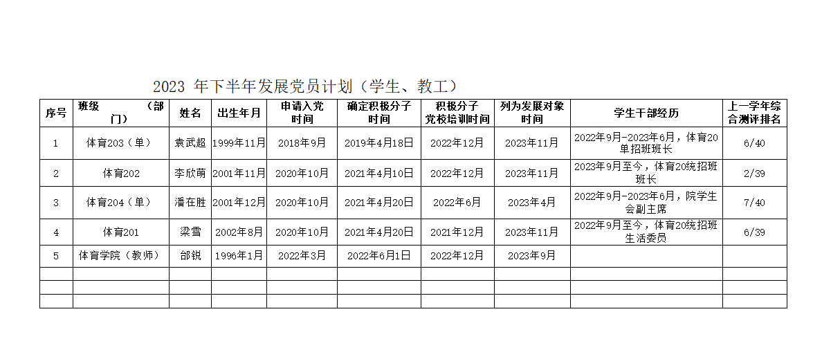 根據(jù)校黨委組織部通知要求(關(guān)于報(bào)送2023年下半年發(fā)展黨員計(jì)劃的通知),現(xiàn)將我院2023年下半年黨員發(fā)展計(jì)劃公示如下。
