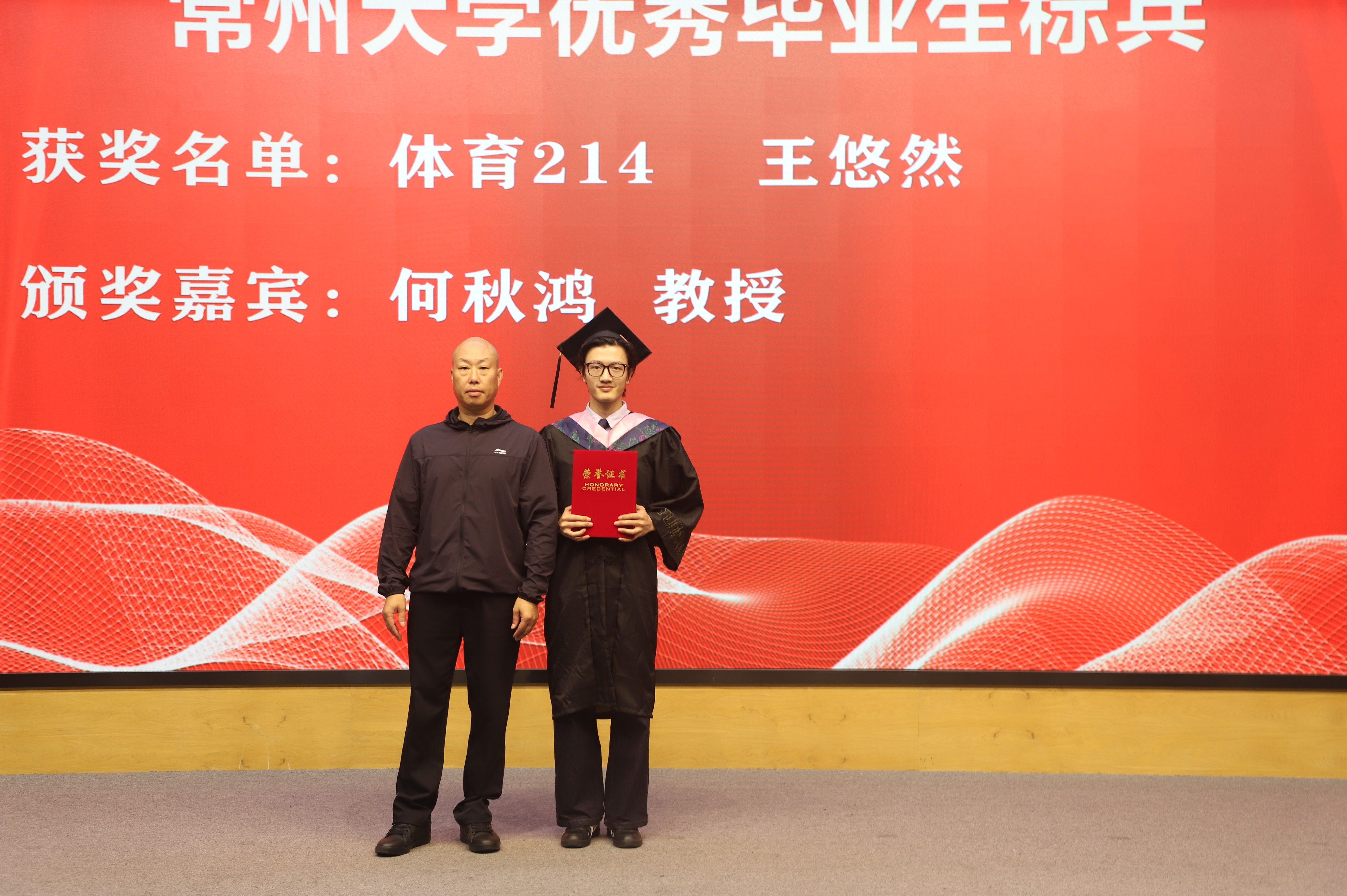 何秋鴻為校優(yōu)秀畢業(yè)生標(biāo)兵頒獎(jiǎng)