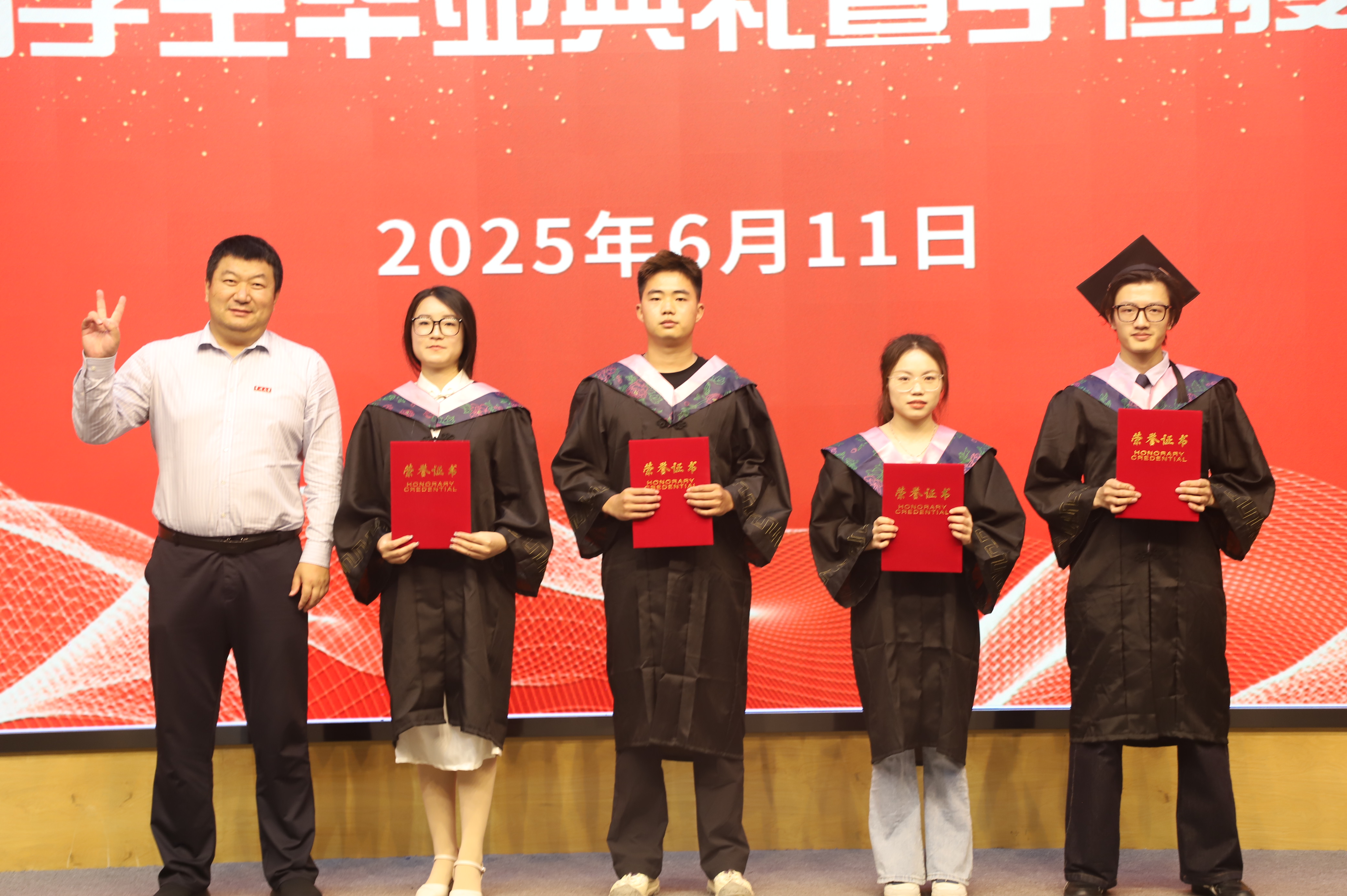 典禮在莊嚴(yán)肅穆的國歌聲中拉開帷幕。院長王紀(jì)信宣讀第一批取得學(xué)士學(xué)位學(xué)生名單,副院長孟令剛宣讀校畢業(yè)生卓越榜樣、優(yōu)秀畢業(yè)生、校優(yōu)秀畢業(yè)生標(biāo)兵名單,副院長咸?hào)|進(jìn)宣讀關(guān)于表彰2025屆考研學(xué)生的決定,桑月標(biāo)宣讀關(guān)于聘任常州大學(xué)2025屆校友工作聯(lián)絡(luò)員的決定。