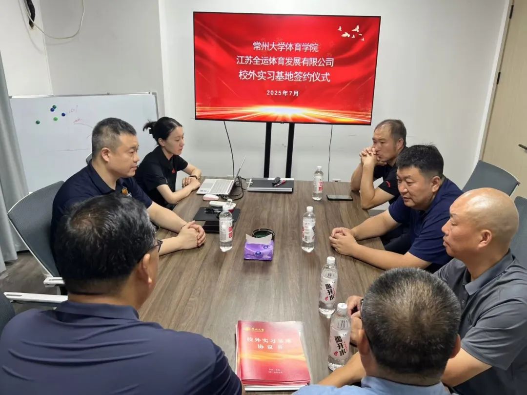2025年7月6日,常州大學(xué)體育學(xué)院與江蘇全運(yùn)體育發(fā)展有限公司(以下簡(jiǎn)稱“全運(yùn)體育”)校外實(shí)習(xí)基地簽約儀式在全運(yùn)體育總部舉行。常州大學(xué)體育學(xué)院院長(zhǎng)王紀(jì)信、副院長(zhǎng)孟令剛、專業(yè)教研室主任何秋鴻教授、全運(yùn)體育總經(jīng)理郭亮及相關(guān)負(fù)責(zé)人出席了本次儀式。