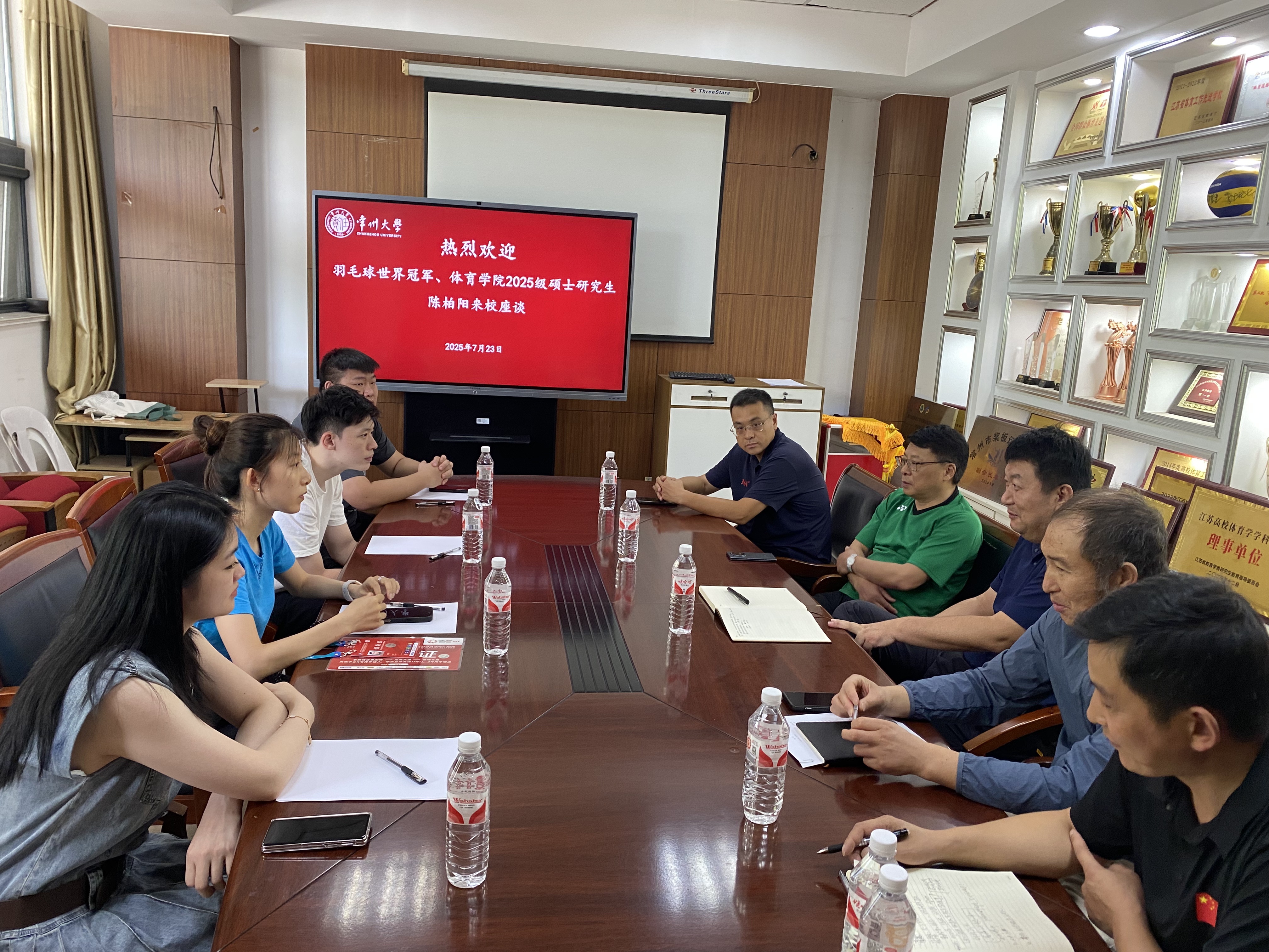 7月23日,羽毛球世界冠軍、我校體育學院2025級碩士研究生陳柏陽來校交流。
